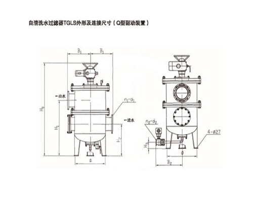 自清洗水過濾器TGLS外形及連接尺寸(Q型驅(qū)動裝置)